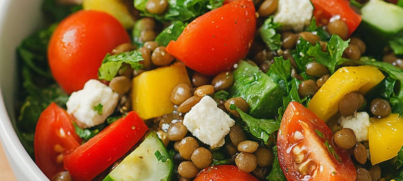 Un voyage culinaire en MĂ©diterranĂ©e dans une assiette đ DĂ©couvrez la richesse des saveurs de cette salade aux lentilles, parfaite pour un dĂ©jeuner sain et dĂ©licieux! đ„