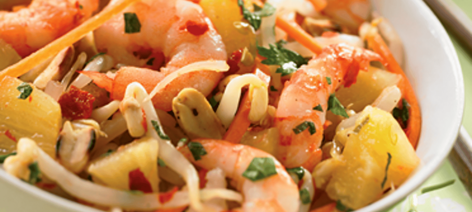 Imaginez une explosion de fraîcheur dans votre assiette ! 🌟 Cette salade de soja aux crevettes et à l'ananas allie la douceur de l'ananas juteux aux crevettes tendres, le tout rehaussé par une touche de menthe rafraîchissante. Parfaite pour un déjeuner ensoleillé ou un dîner entre amis, chaque bouchée vous transporte vers une île paradisiaque. Laissez-vous séduire par cette harmonie de saveurs et faites-vous plaisir ! 🍍💖